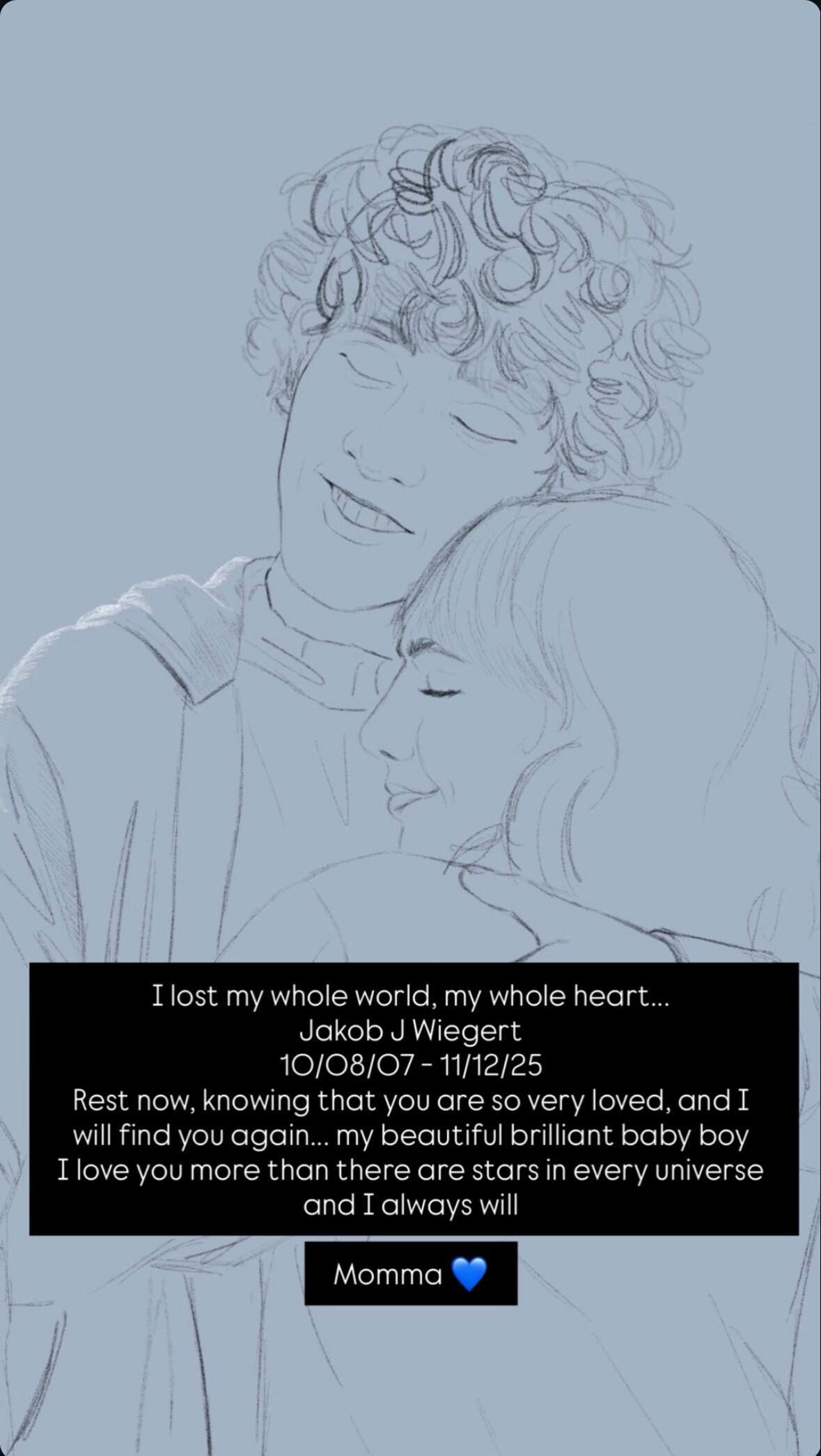 You will forever be my jakedaw, my mi̱ko, my dear heart, my lovebug. And I will forever love you with everything I have. You were taken too soon.... but you finally have the peace and rest you wanted. I will be your momma in every universe... in every lifetime... eternal.. and I will find you again...